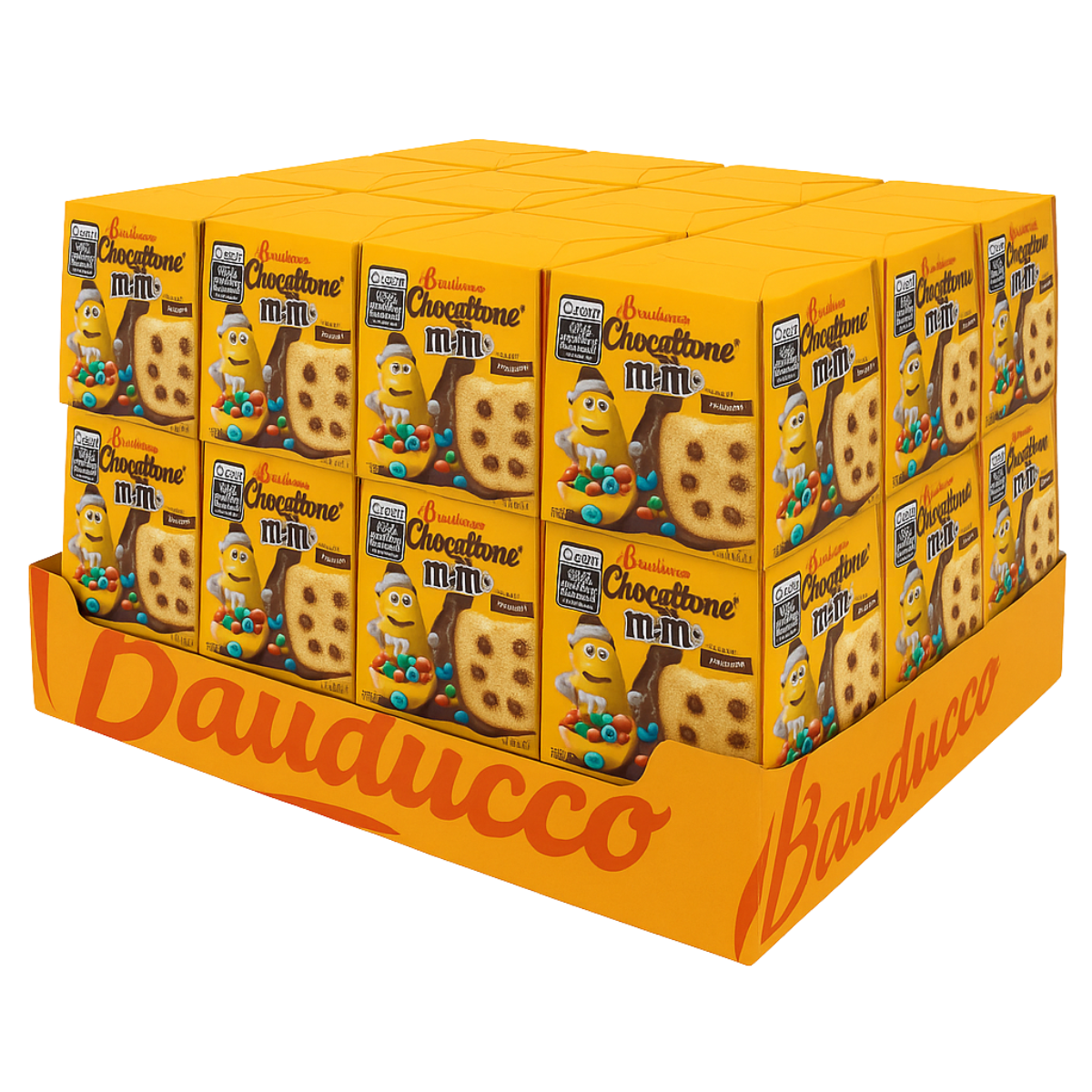Caixa com 24 Mini Chocottones Bauducco M&M’s 80 g – Decore do seu jeito!