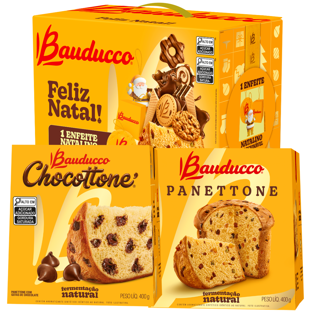 Presentei com uma cesta composto por produtos de primeira linha da Bauducco